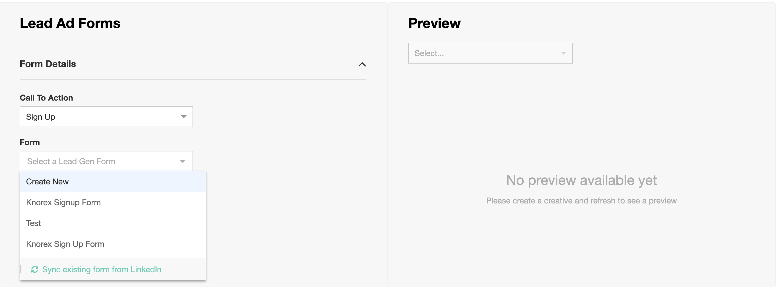 The Lead Gen Form Creative can only be used when you are launching LinkedIn Lead Gen campaign.
