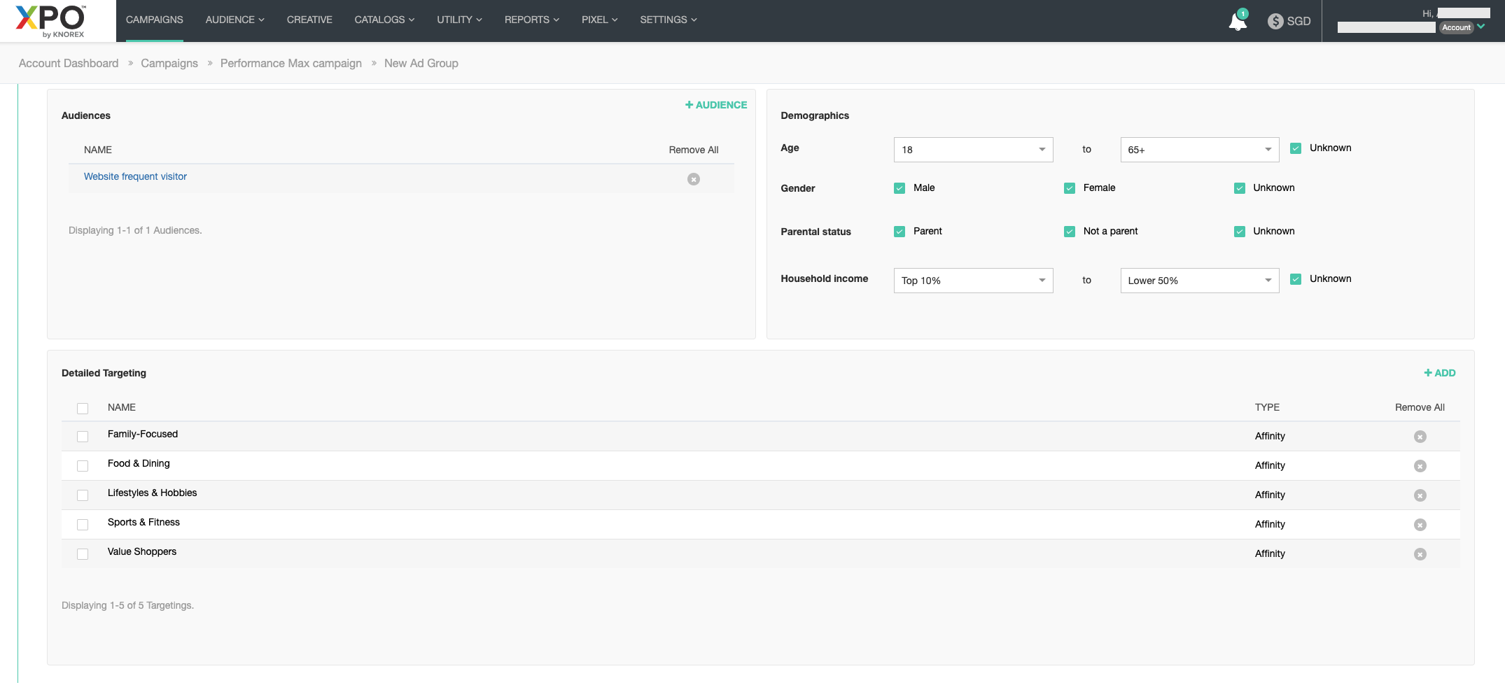 When creating an ad group from within a Performance Max campaign in XPO, the Ad Group Type will automatically be Performance Max.