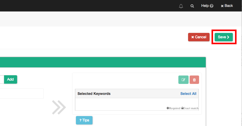 - Once the keyword is added, the system will also automatically provide similar/relevant keyword suggestions.