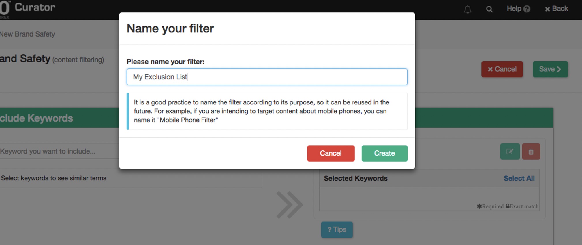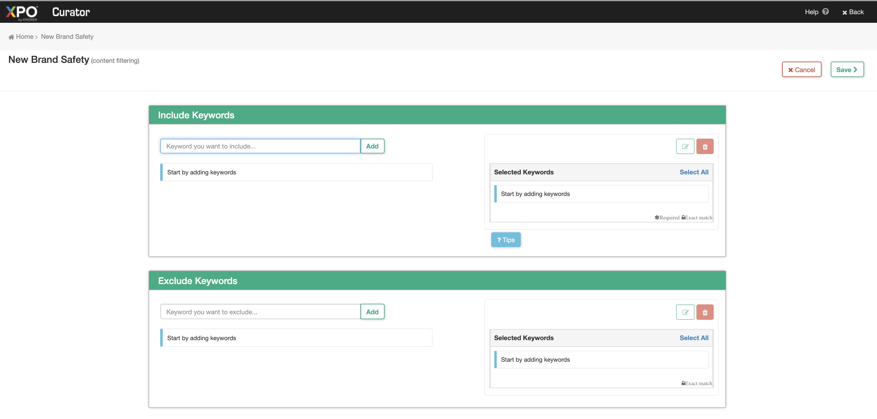 - Click on +New Brand Safety to set a new exclusion/inclusion rule.