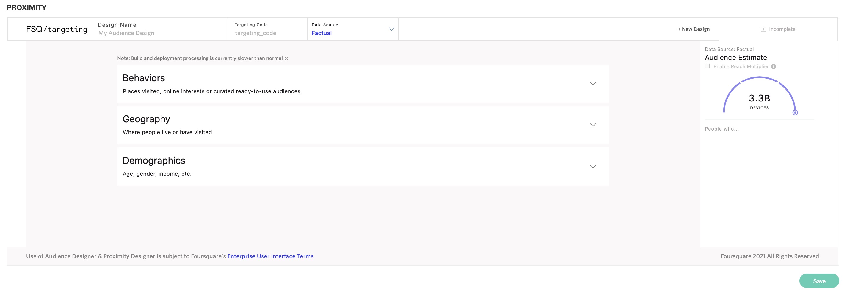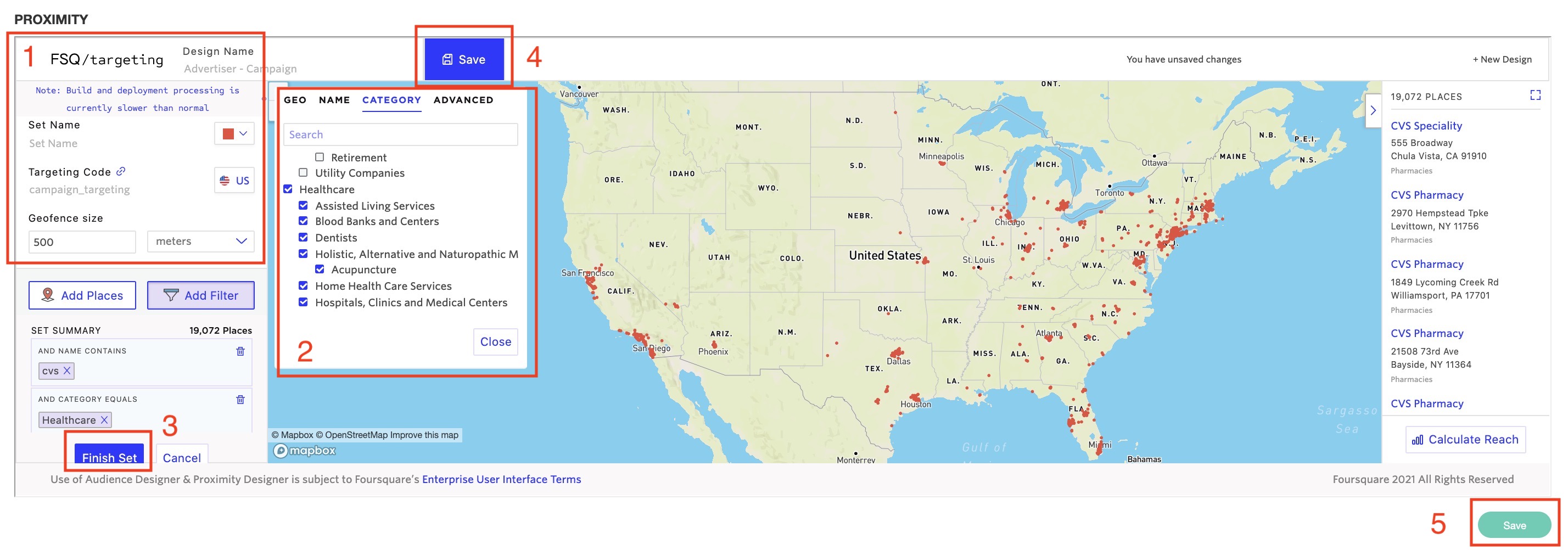 - Click Finish Set, then Save and allow Factual/Foursquare to calculate the audience set.