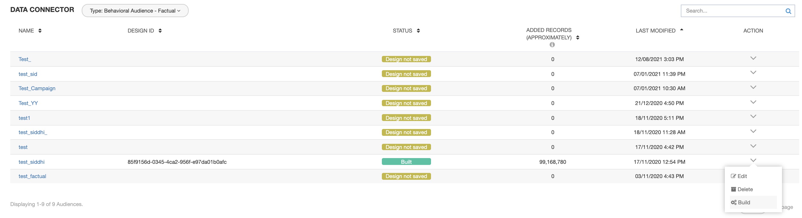 - You will be able to view the newly created audience under the "Behavioral Audience - Factual" from Audience Segment dashboard, as well as the Data Connector dashboard.