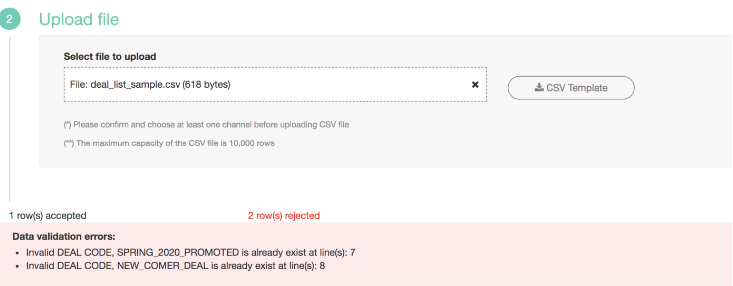 - You cannot upload the same deal twice. Deal codes cannot be duplicated.