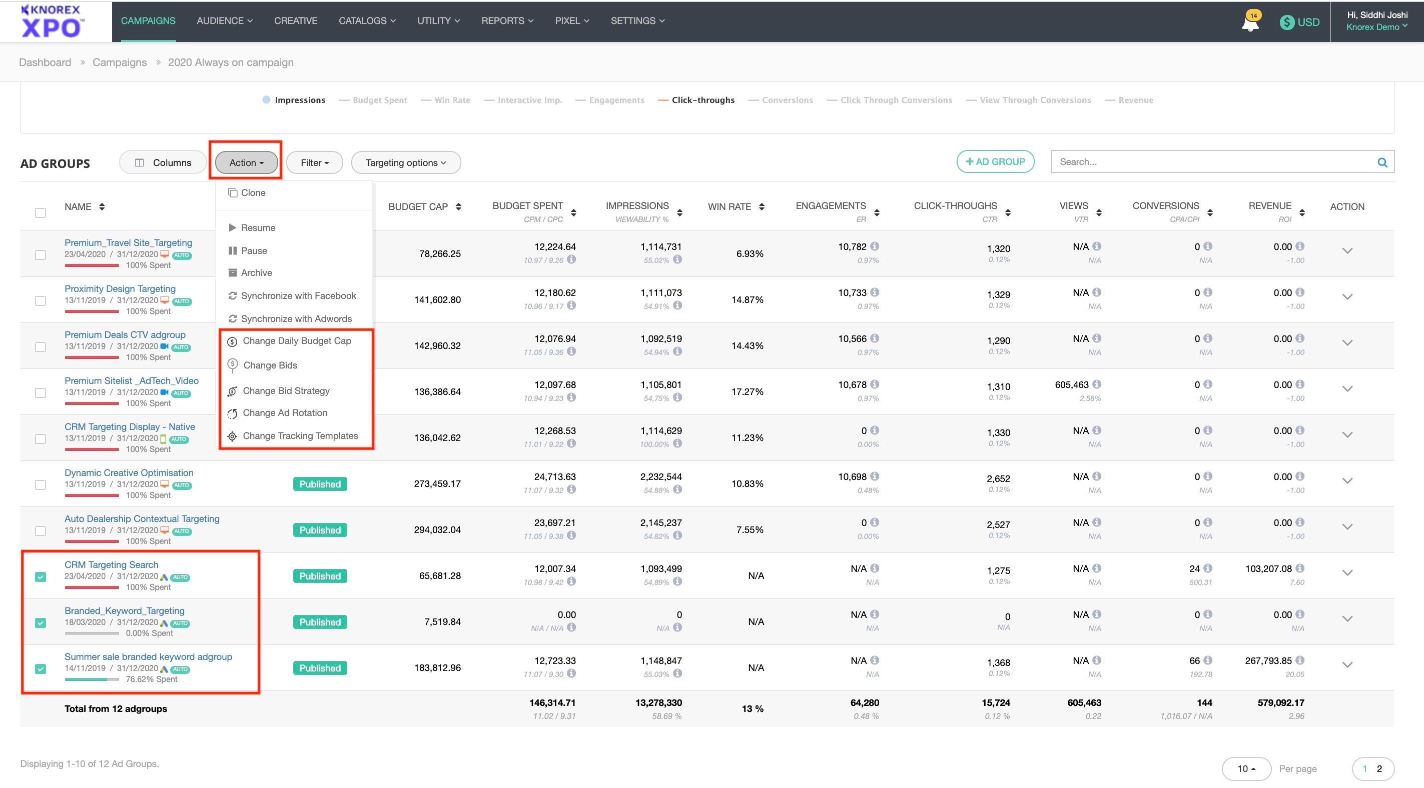 In XPO, you can easily edit and update the daily budgets, bids, ad rotation, and/or custom parameters to your Search campaigns, and best of all, you can make these edits to multiple ad groups at the same time.