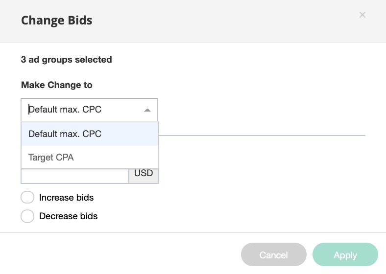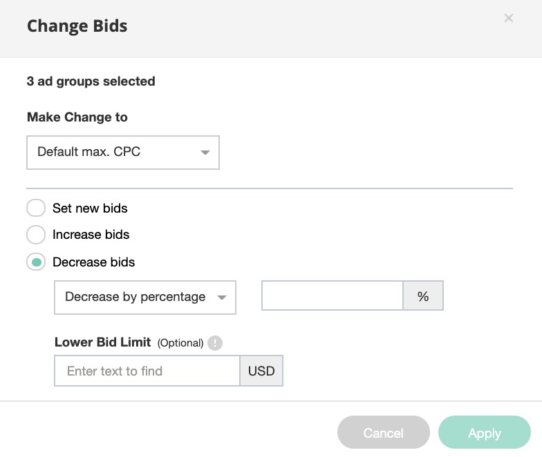 - You can edit the bid amounts of the selected ad groups.