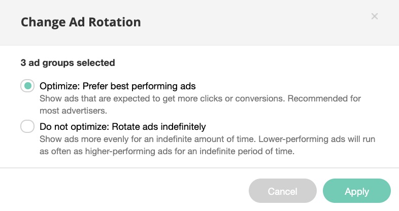 - You can update your ad rotation for one or more ad groups here.