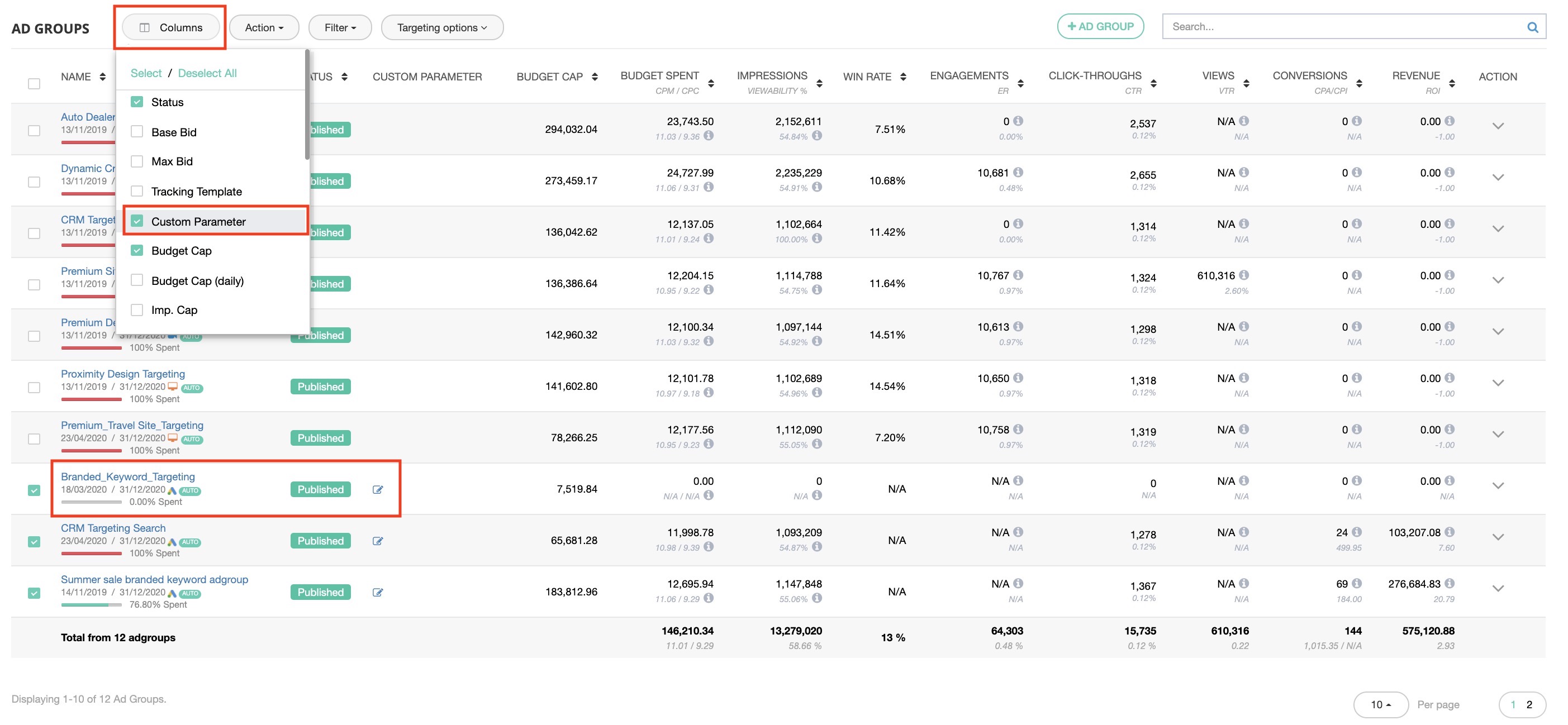 - You can also find the Custom Parameters: Select Columns dropdown > tick custom parameters.