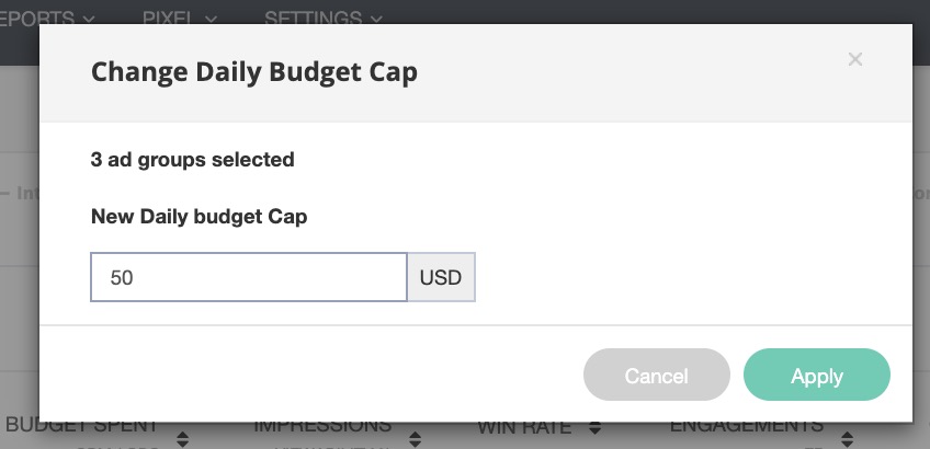 - You can update one or more of the selected ad group's daily budget cap only if the option "Don't apply daily budget cap to ad groups" at the campaign level is ticked. You will then be able to bulk update as shown in the below image.