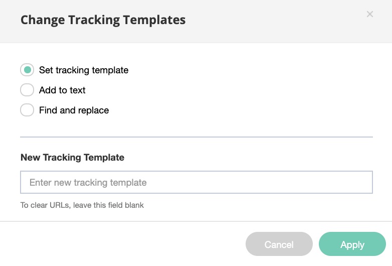You will have 3 options for editing the tracking template for one or more ad groups:
