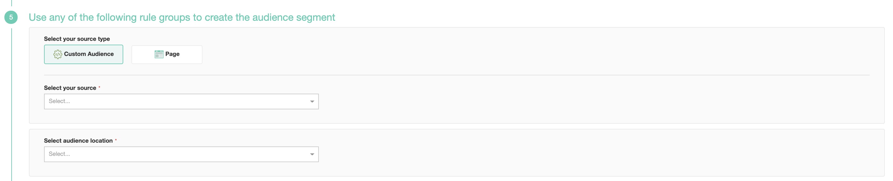 Select the Source. Create this audience by using online behavioral trends and similarities from people selected in your source.