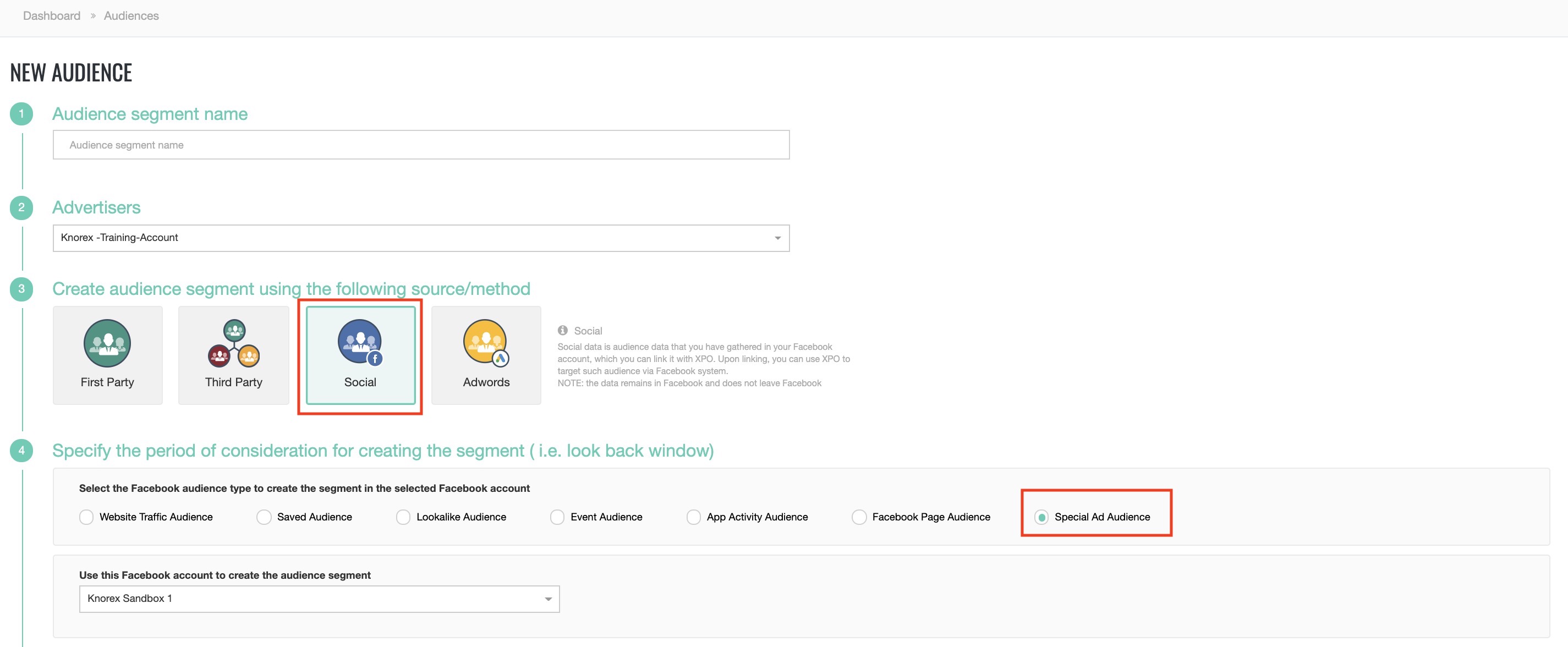 - You can sync/allocate special ad audiences from your Facebook Account into XPO.