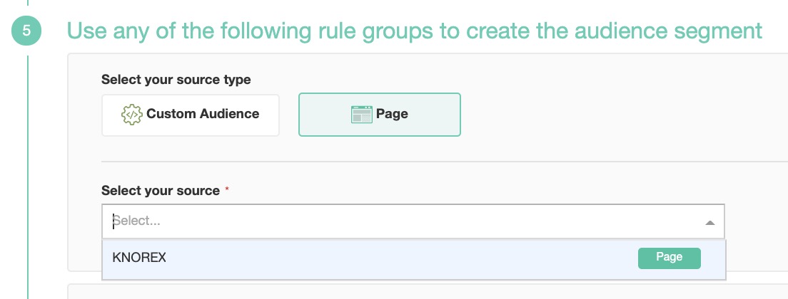- Select ONE Facebook Page as the source of your new special ad audience segment.