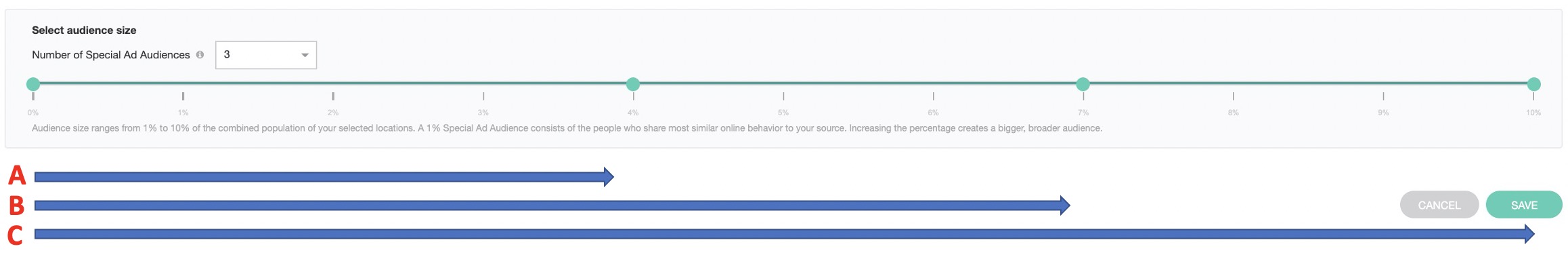 In short, an increase or decrease in the percentage affects the level of similarities and target size of the special ad audience. The higher the percentage, the less similar but a broader audience size.