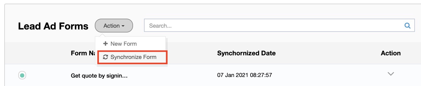 - From the Lead Ad Forms section, select Synchronize Forms.