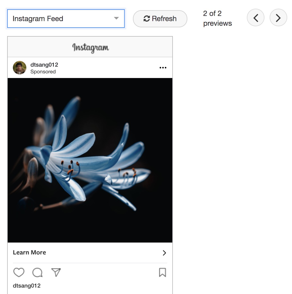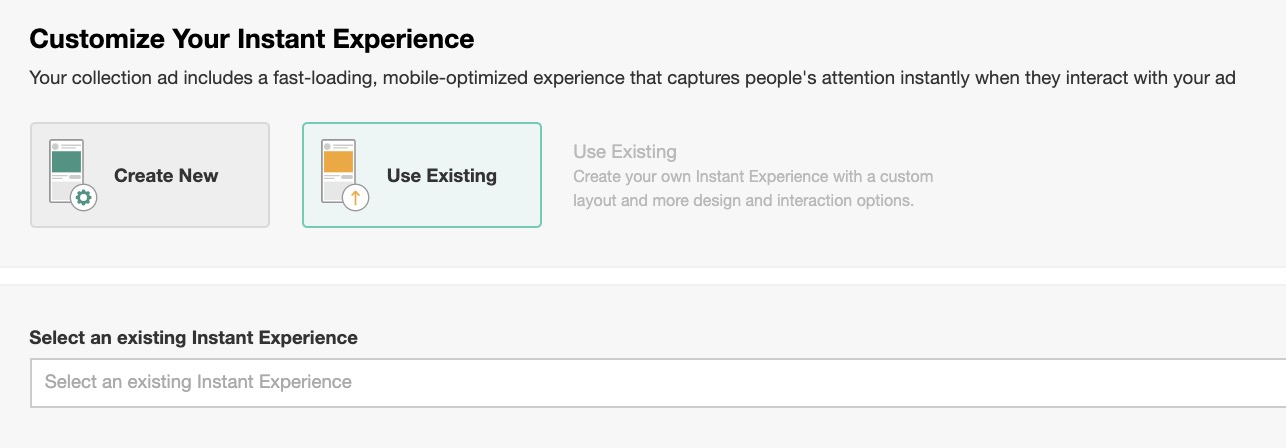 - You can select an Instant Experience from the dropdown list.