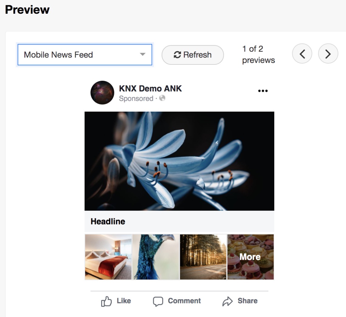 - You can have a Facebook preview of your Instant Experience.