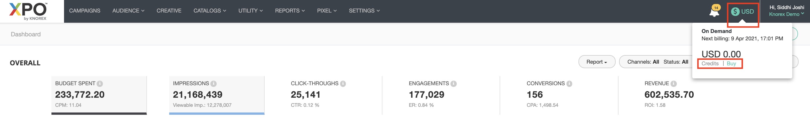 - The requested credits will be granted upon successful review. This method assumes that you have a post-paid arrangement with your agency or Knorex.