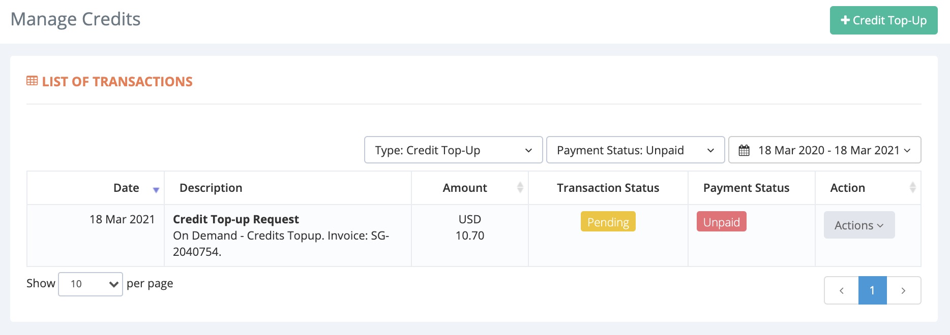 - Once the payment is successfully deducted from your card, the top-up credits will be reflected immediately in your XPO account.