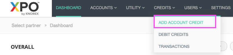 a) From your Partner Dashboard, click Credits > Add Account Credit.