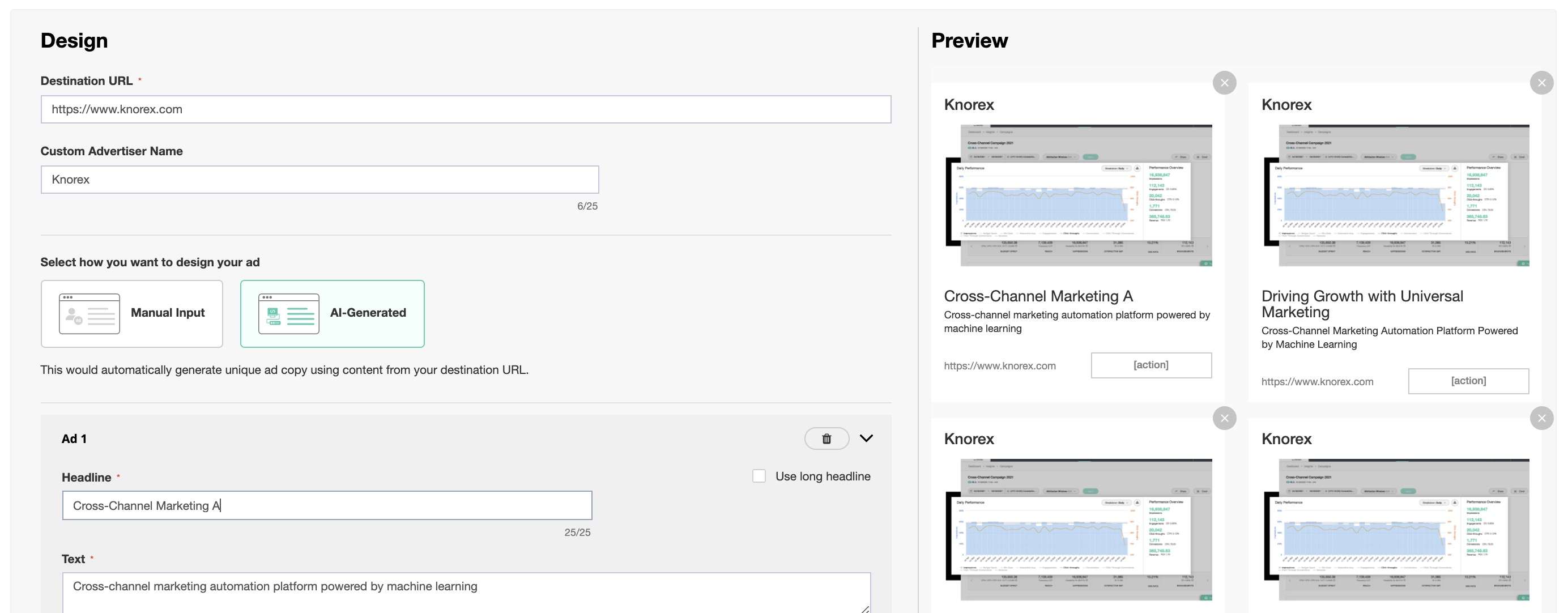 - Preview the auto-populated and generated ads. Any edits you make will be reflected in the preview.