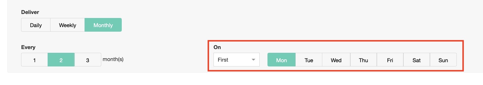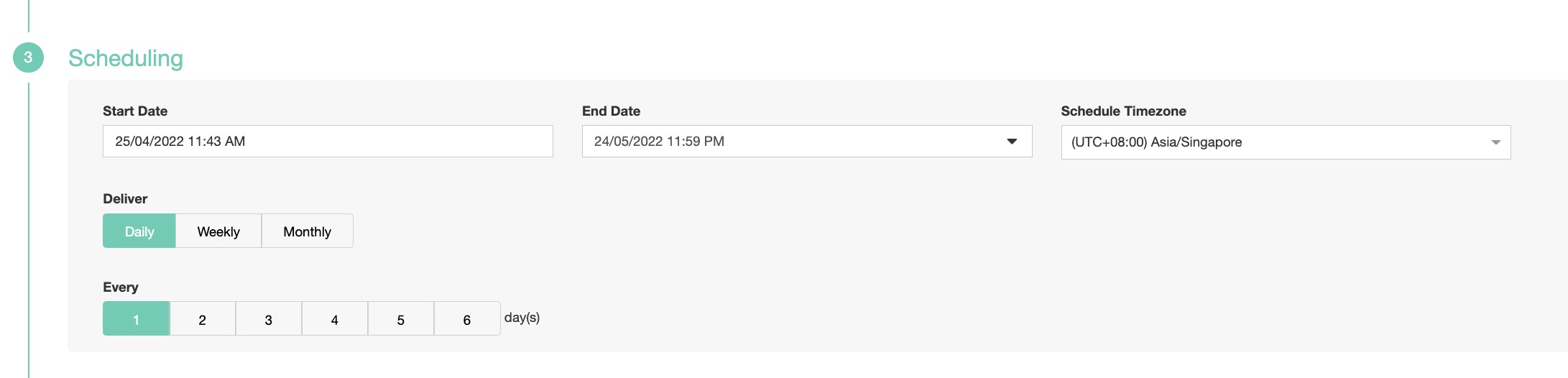 - Specify your delivery schedules as Daily, Weekly, or Monthly.