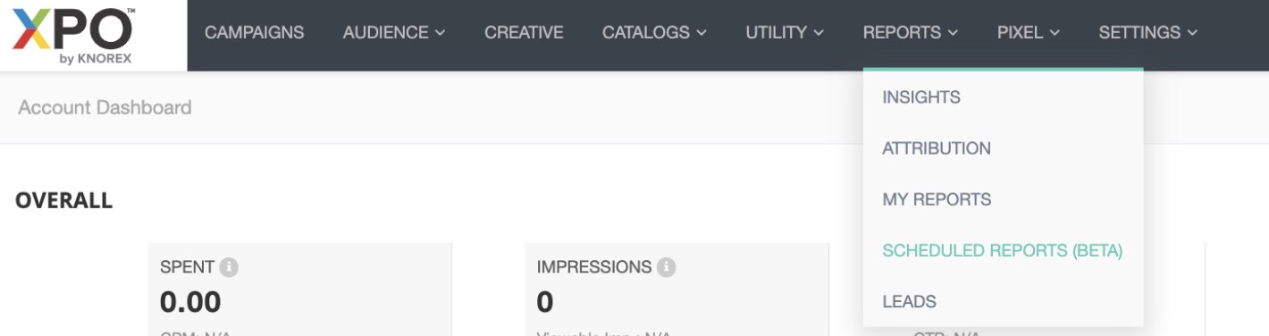- Under XPO Account menu, click on Reports and select Scheduled Reports.