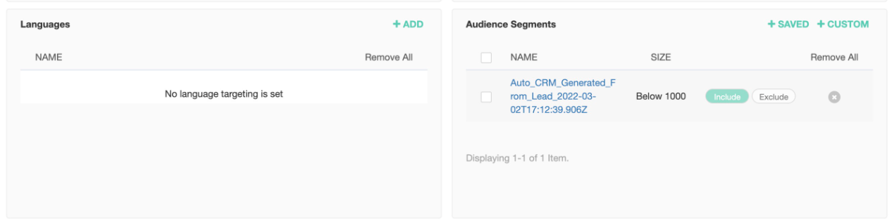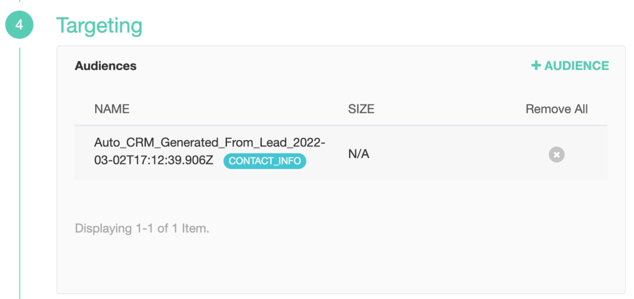 - In the ad group creation page, your Audience Segment will be based on the leads you selected earlier.
