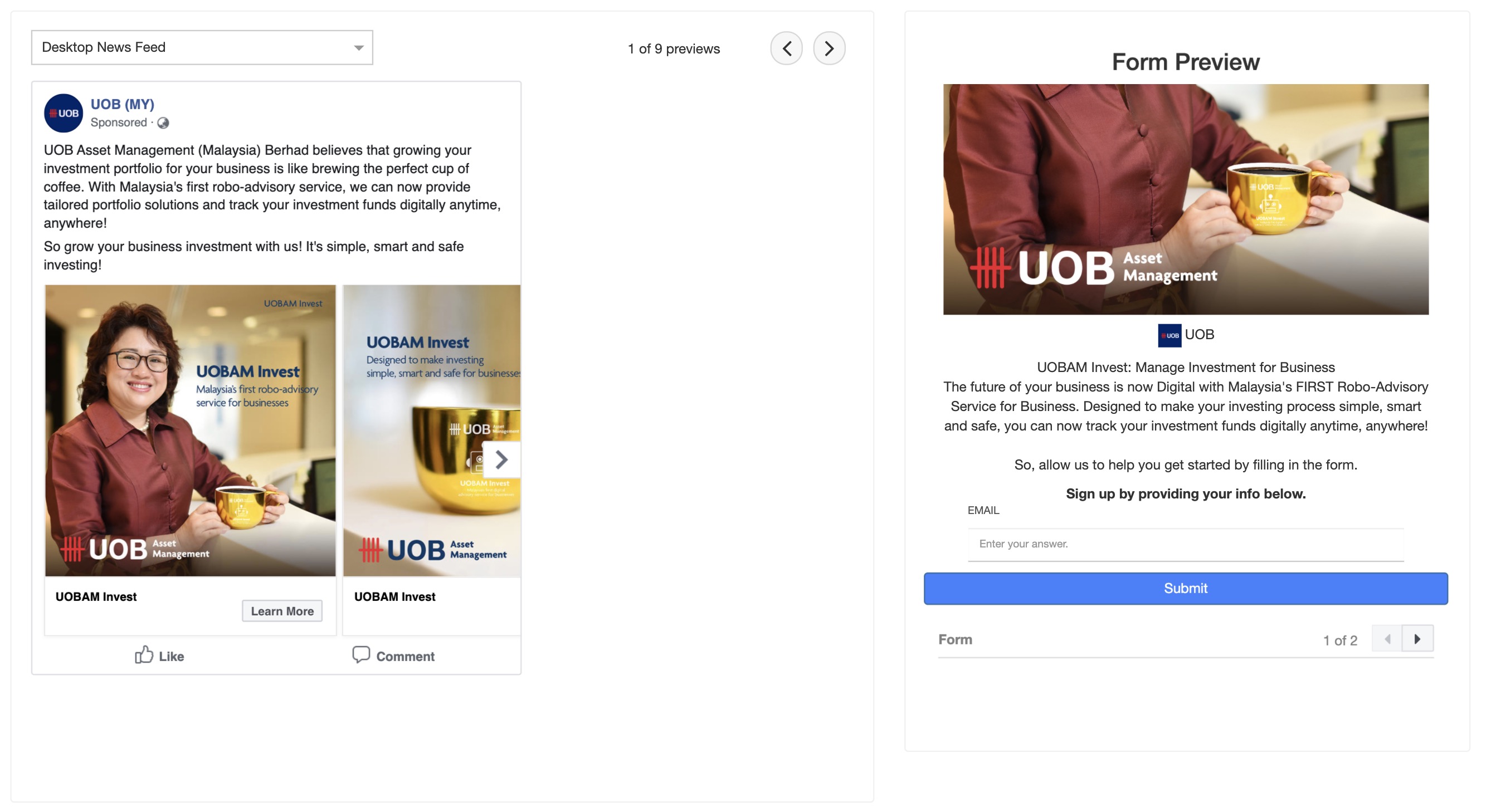 Share the lead ad creative from the Design dashboard by clicking the Actions and selecting Share.