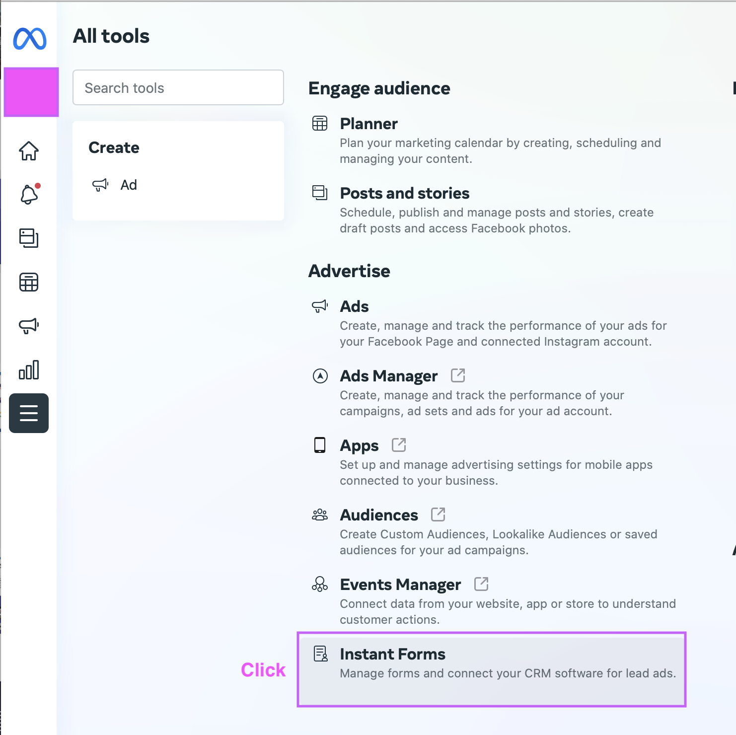 - Click on Instant Forms. This will show you the list of forms that you have created, if any.